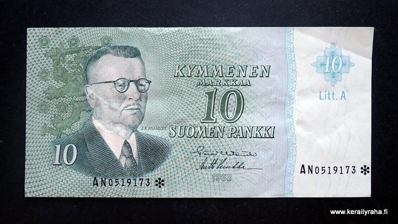 10 Markkaa 1963 Litt.A Tähti no AN0519173* Hetemäki-Luukka