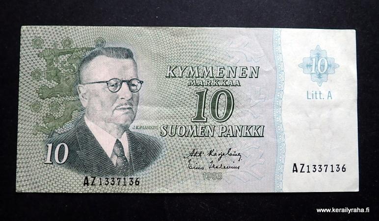 10 Markkaa 1963 Litt.A no AZ1337136 Karjalainen-Helenius kl.4-5