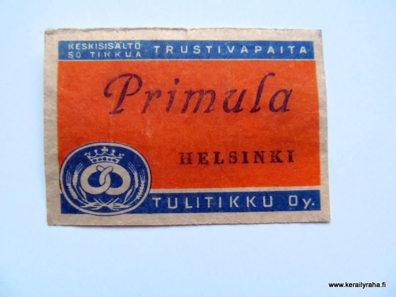TT Etiketti Helsinki Primula Tulitikku Oy