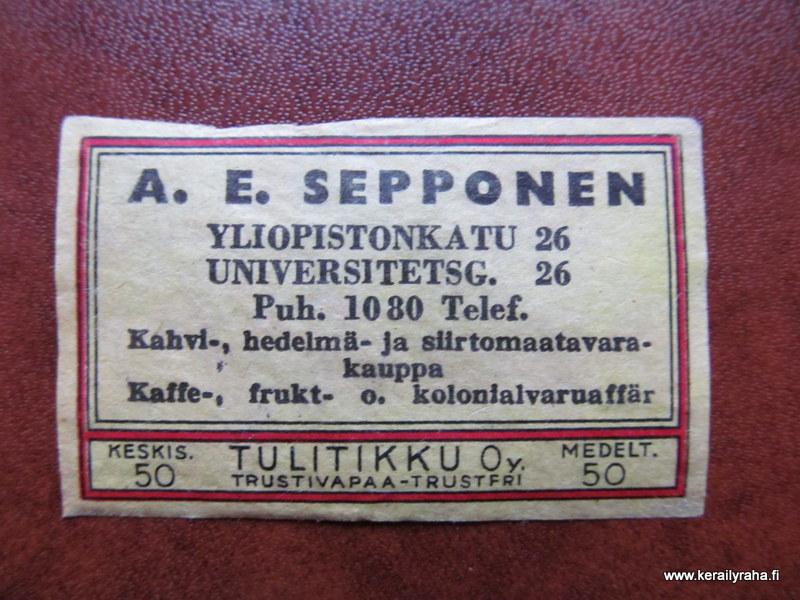 TT Etiketti Helsinki? A.E.Sepponen Tulitikku Oy