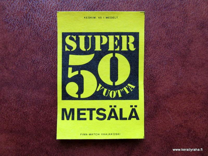 TT Etiketti Helsinki Metsälä Super 50 vuotta Finn-Match Oy