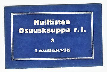 TT Etiketti Lauttakylä Huittisten Osk Sininen