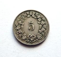 Switzerland 5 rappen 1881 Nickel