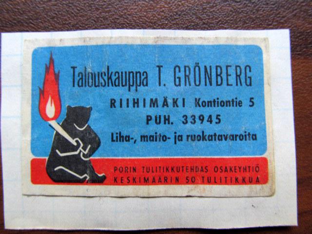 TT Etiketti Riihimäki T.Grönberg Porin karhu