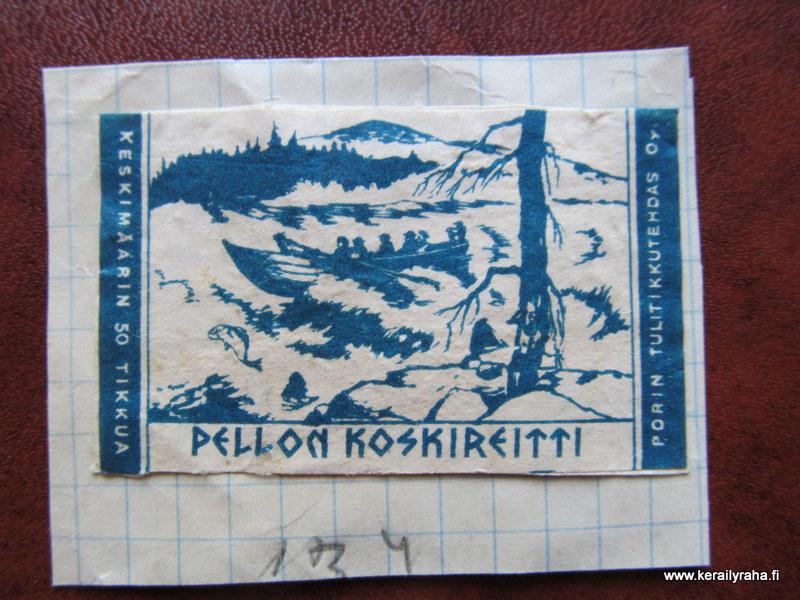 TT Etiketti Pellon Koskireitti Porin Tulitikkutehdas kuvallinen