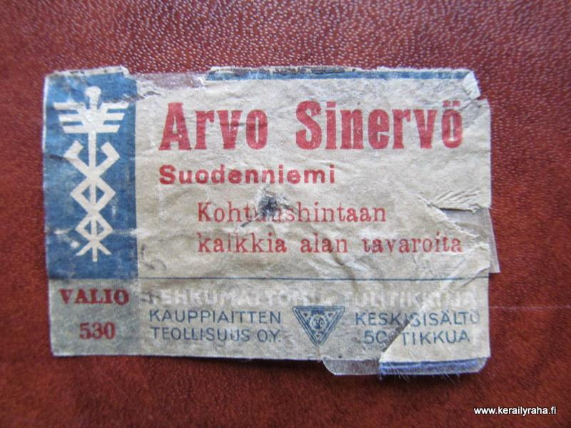 TT Etiketti Suodenniemi Arvo Sinervö V.530
