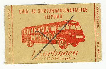 TT Etiketti Sotkamo J.Korhonen Liikkuva Myymälä Porin