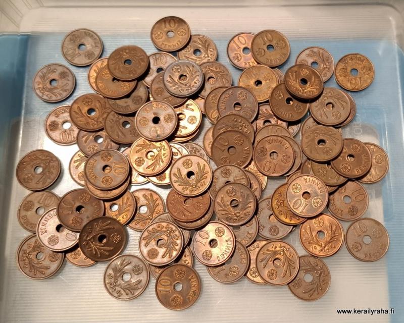 PIKAPOISTO 10 penniä malli 1941-43 Cu pussi 100 kpl Vaihteleva kunto, keskim. kl.4-6